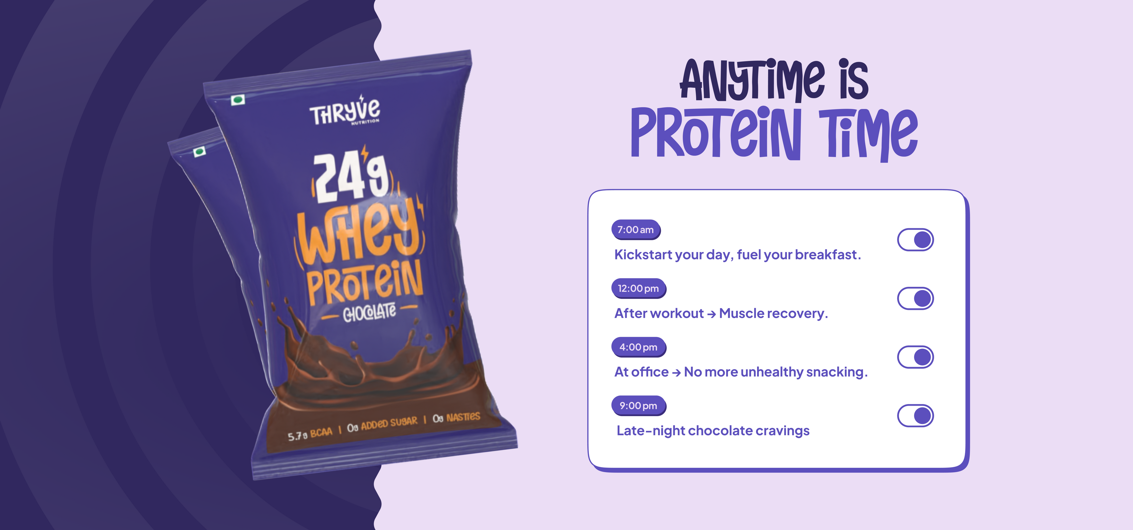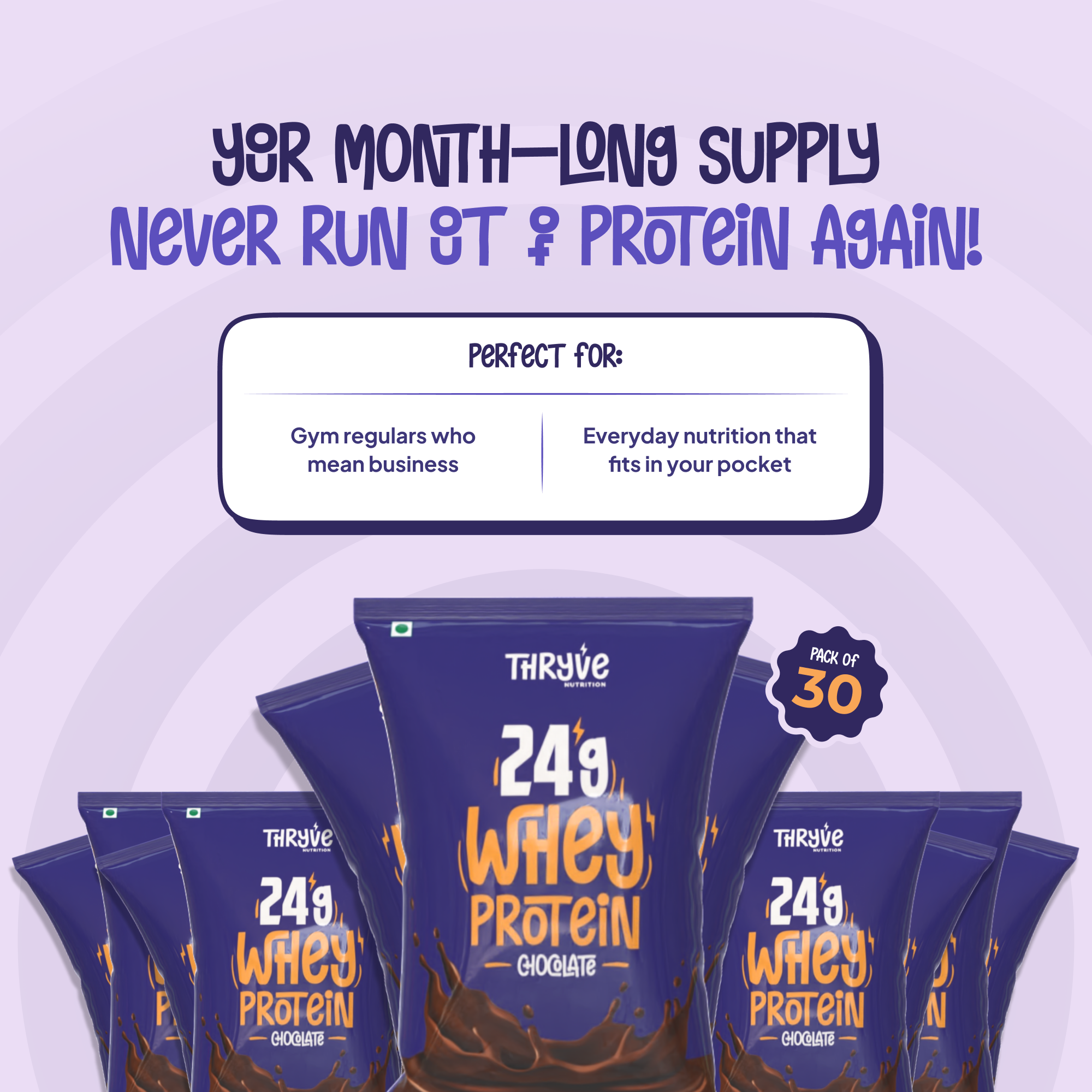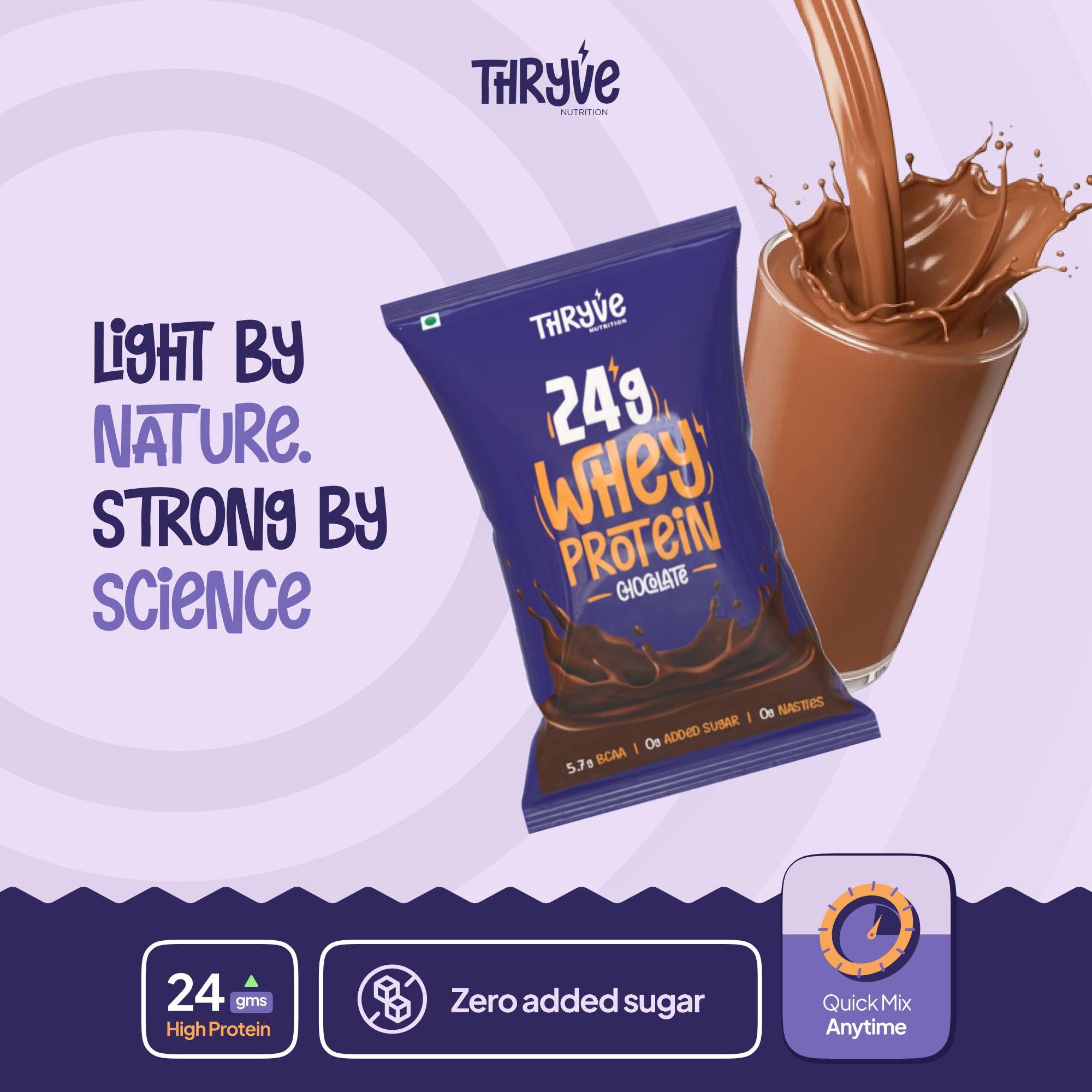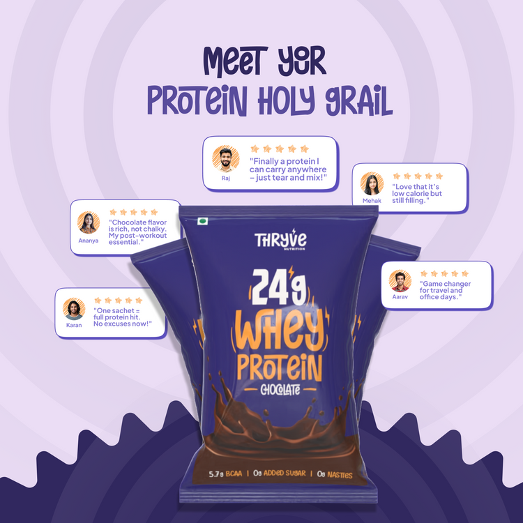 Meet the easiest way to get your daily protein fix. A single-serve sachet packed with 24g of high-quality whey protein concentrate. Backed by science, smooth in texture, and light on your gut. Thryve is not just another protein; it’s your everyday fuel made smarter. Whether you’re chasing fitness goals or just want better nutrition on the go, Thryve makes it effortless.